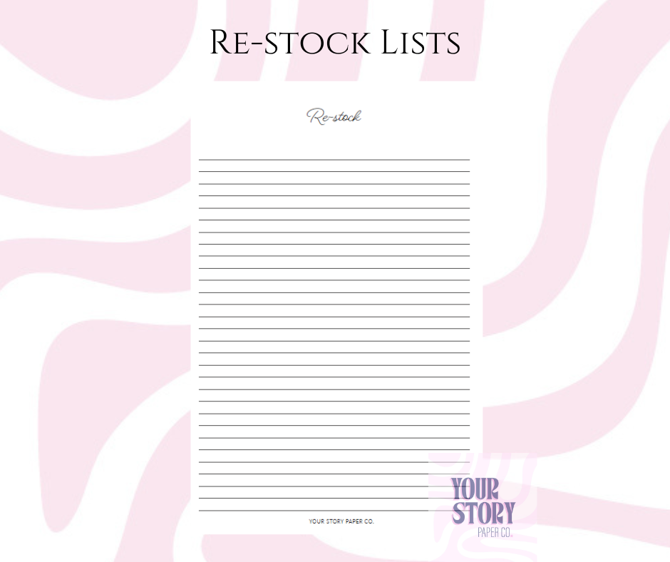 -Restock Lists – Ideal for keeping track of supplies or shopping