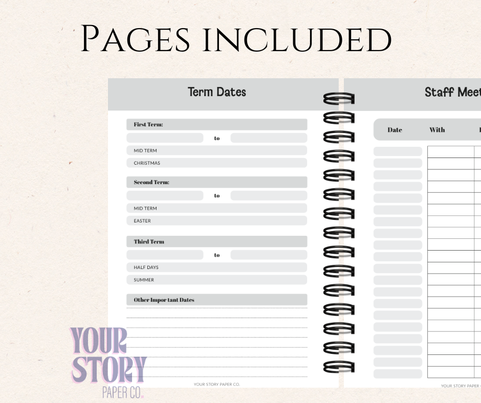 Added at the Back of your EP: This must-have addition includes: ✅ Money Collection Tracker ✅ Birthday Reminders ✅ Parent Day Notes ✅ Behaviour Logs ✅ Parent Communication Log ✅ Meeting Notes ✅ PD Tracker ✅ To-Do Lists